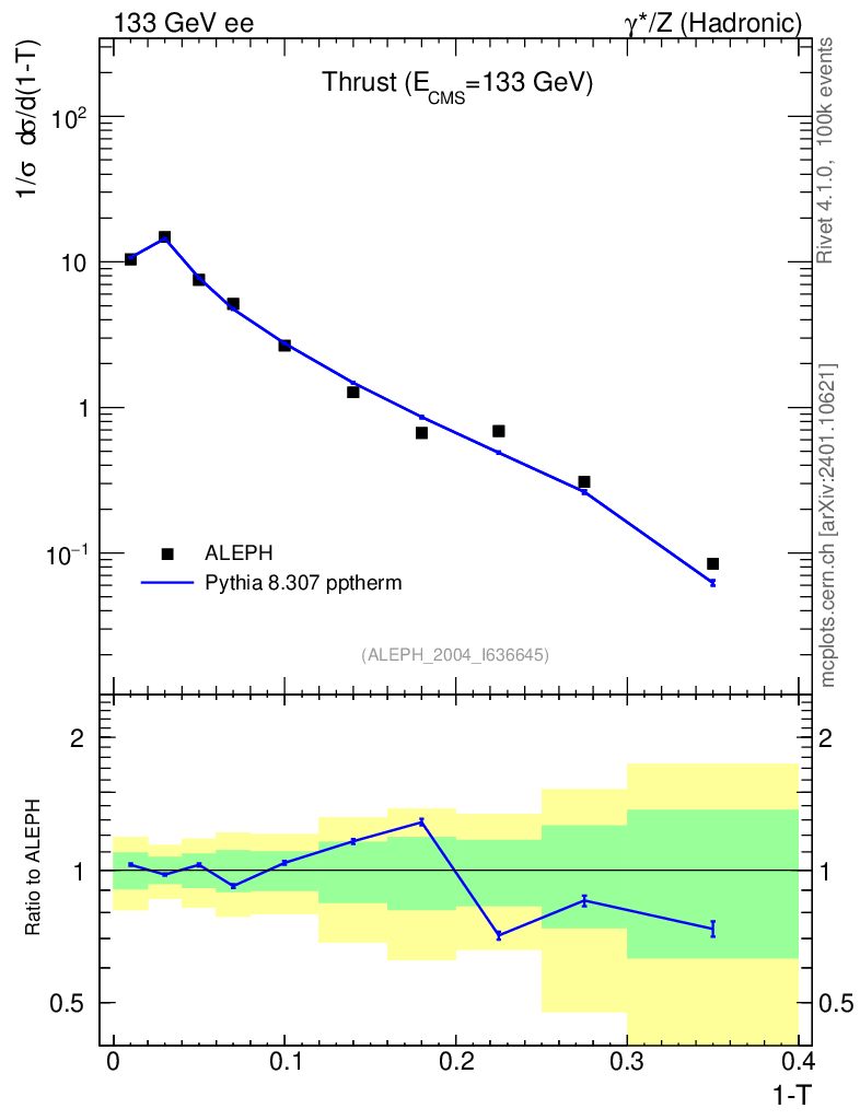 Lines: data, pythia8 8.307 pptherm |