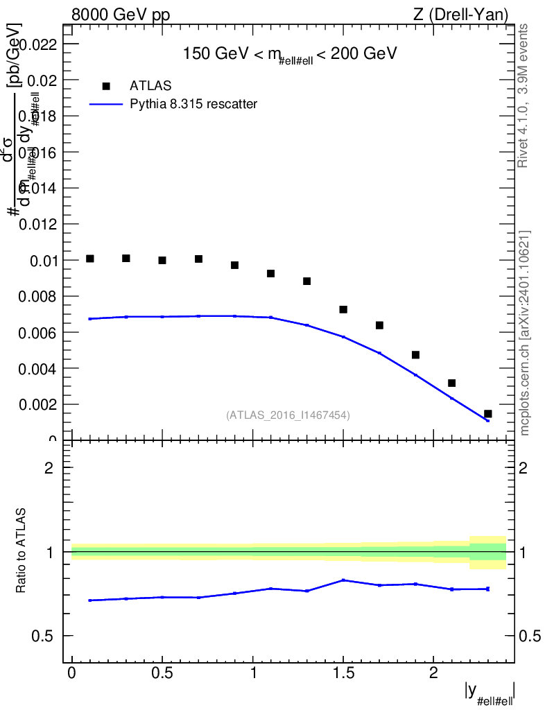 Lines: data, pythia8 8.315 rescatter |