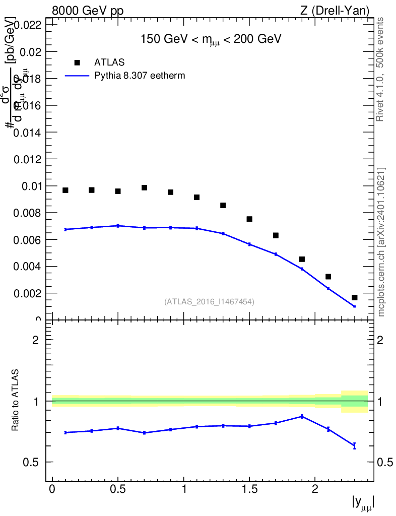 Lines: data, pythia8 8.307 eetherm |