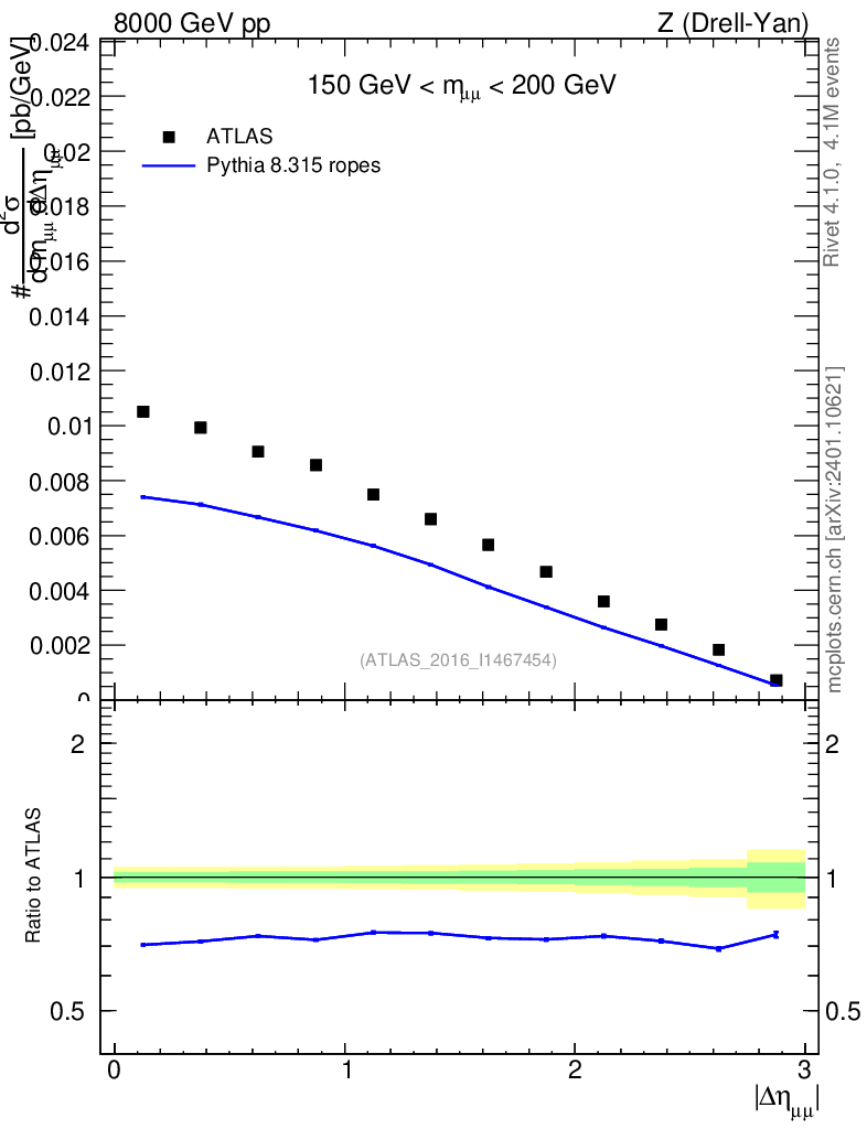 Lines: data, pythia8 8.315 ropes |