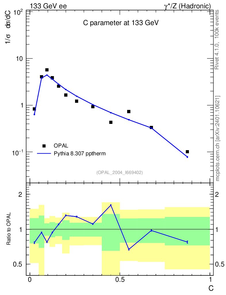 Lines: data, pythia8 8.307 pptherm |