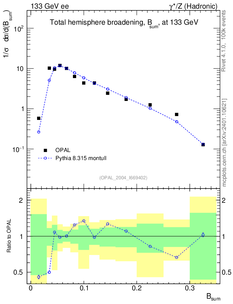 Lines: data, pythia8 8.315 montull |