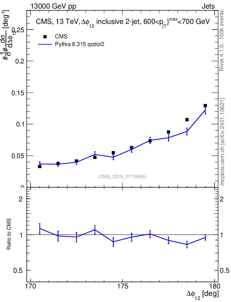 Lines: data, pythia8 8.315 qcdcr2 |