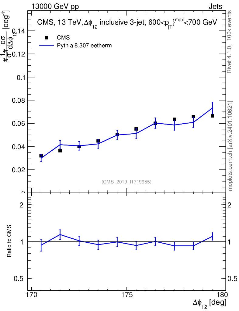 Lines: data, pythia8 8.307 eetherm |