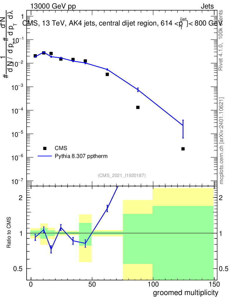 Lines: data, pythia8 8.307 pptherm |