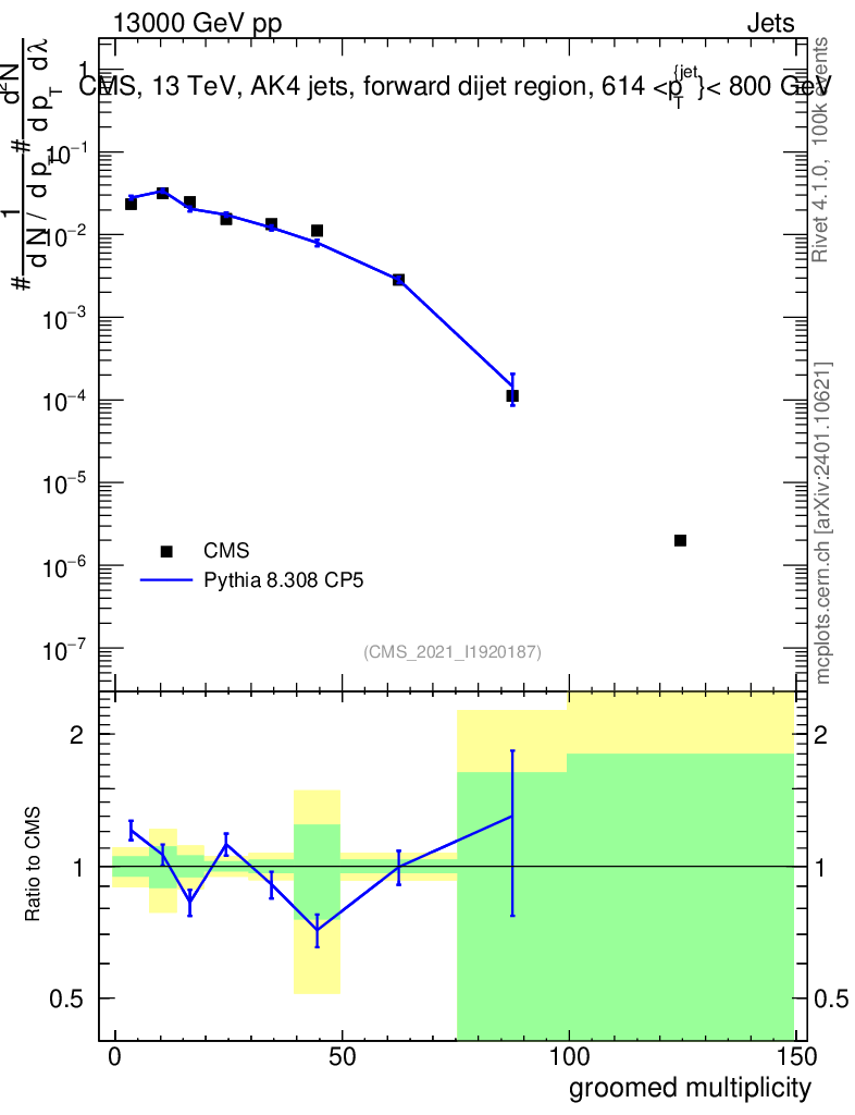 Lines: data, pythia8 8.308 CP5 |