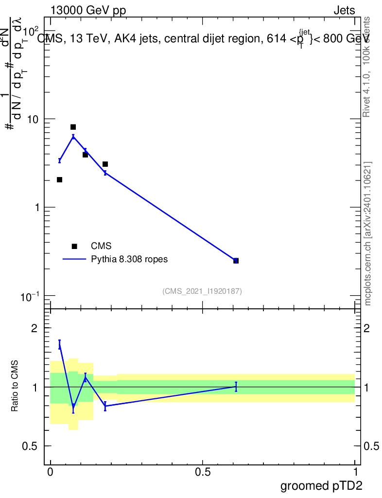 Lines: data, pythia8 8.308 ropes |