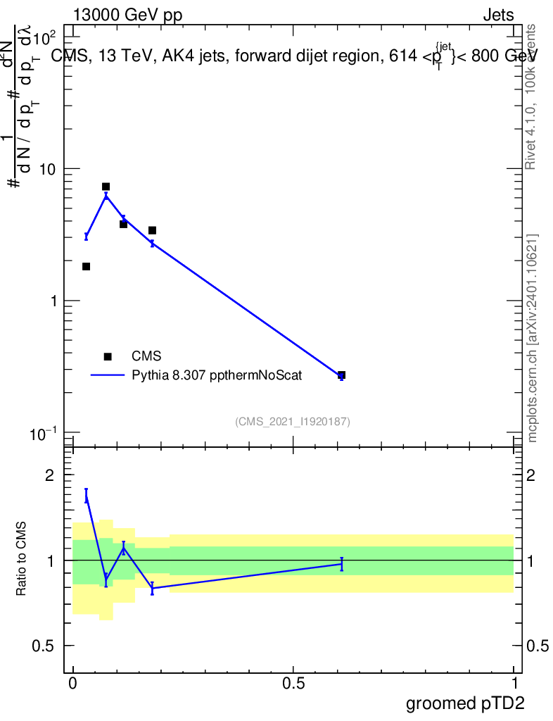 Lines: data, pythia8 8.307 ppthermNoScat |