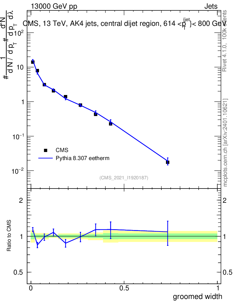 Lines: data, pythia8 8.307 eetherm |