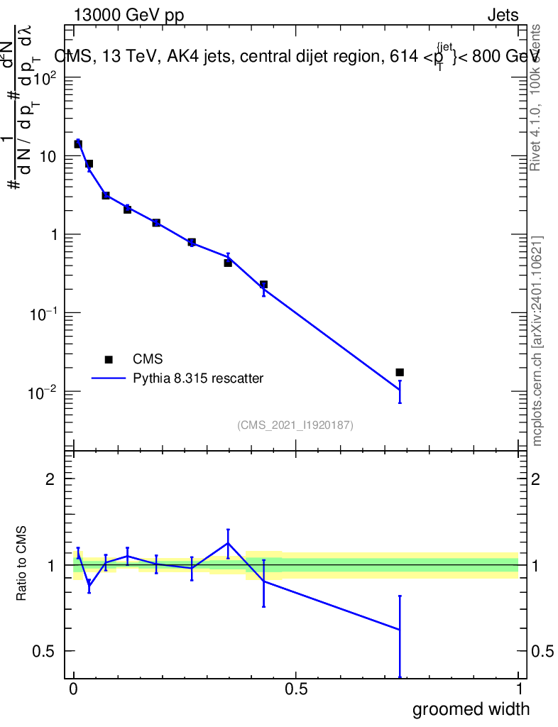 Lines: data, pythia8 8.315 rescatter |