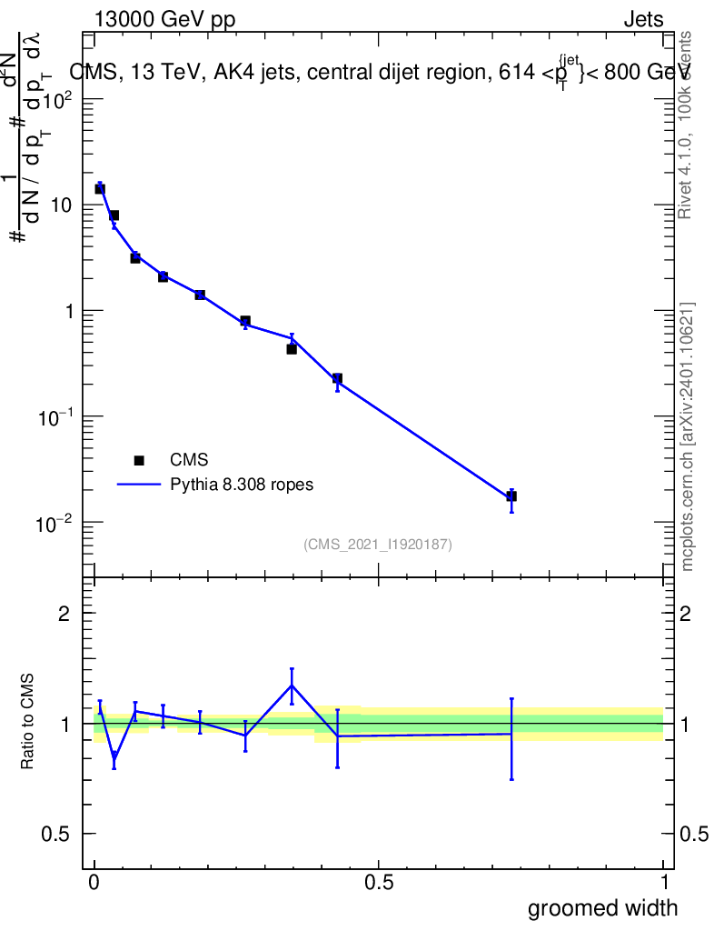 Lines: data, pythia8 8.308 ropes |