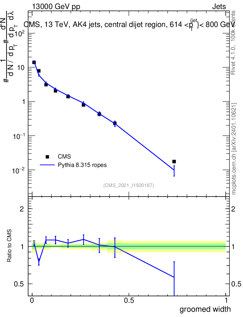 Lines: data, pythia8 8.315 ropes |