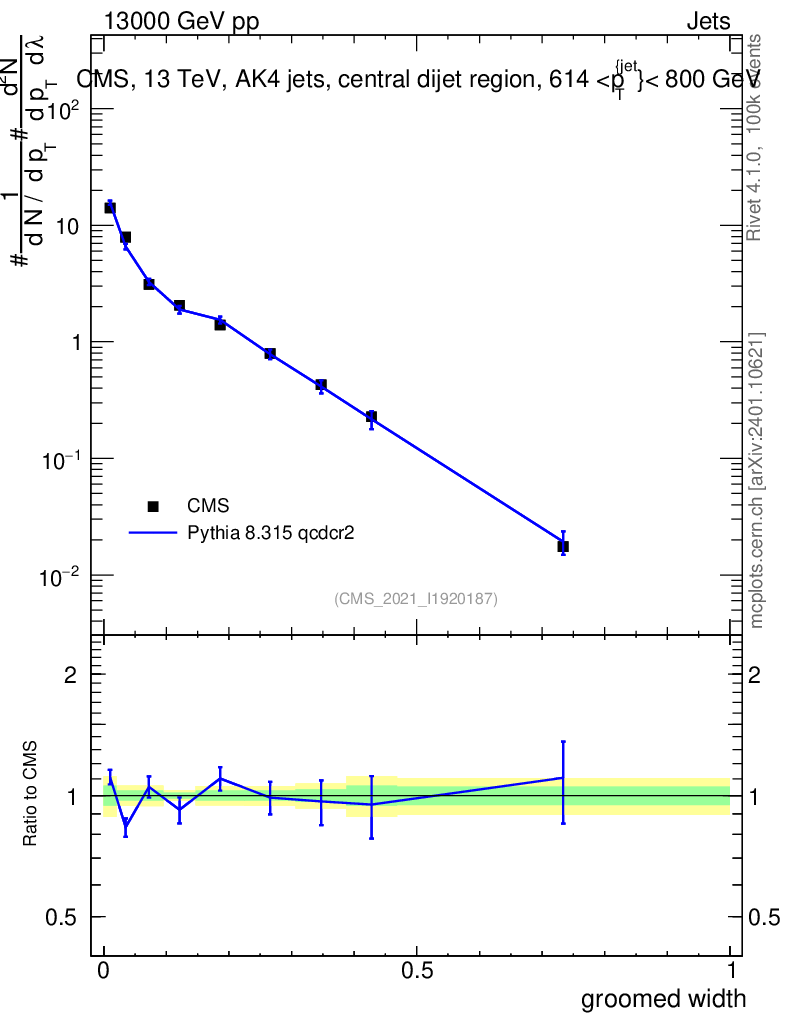 Lines: data, pythia8 8.315 qcdcr2 |