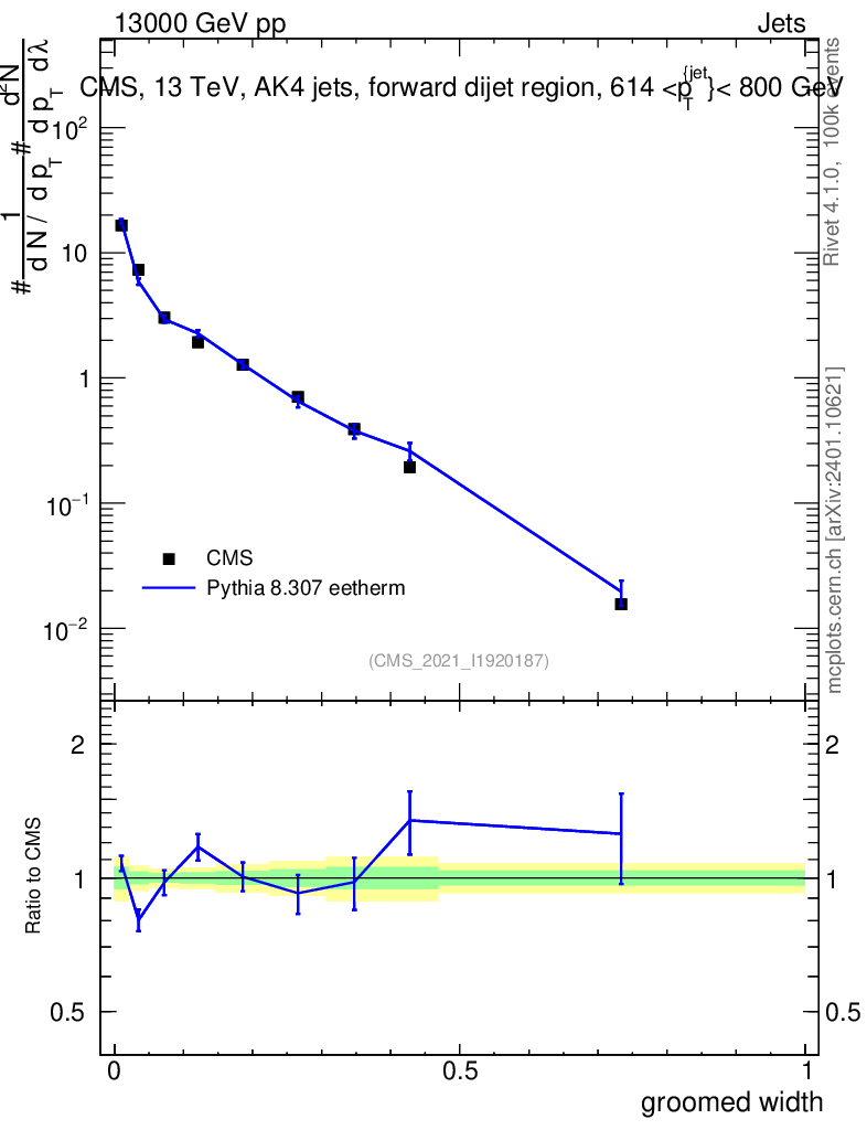 Lines: data, pythia8 8.307 eetherm |