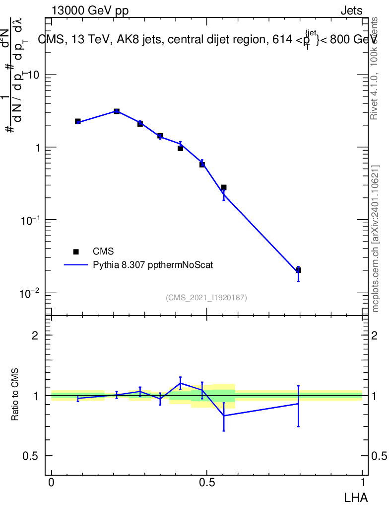 Lines: data, pythia8 8.307 ppthermNoScat |