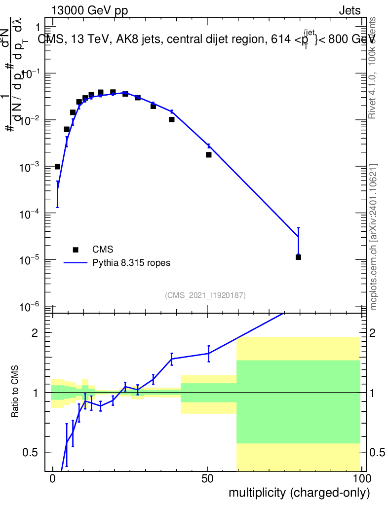 Lines: data, pythia8 8.315 ropes |