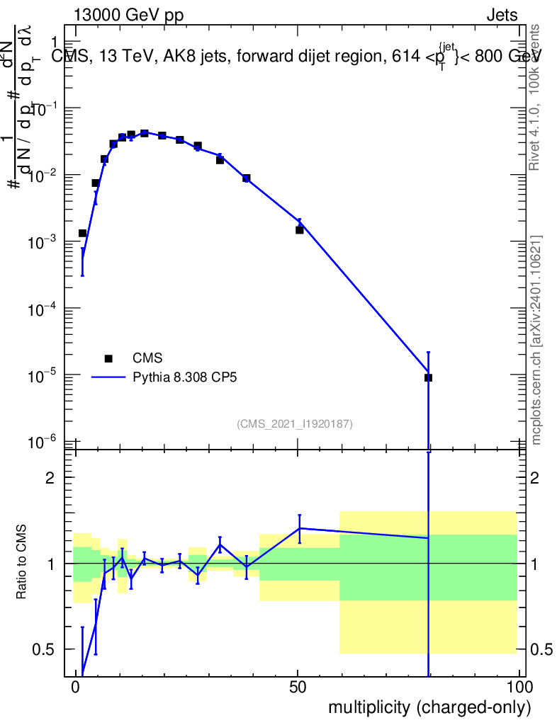 Lines: data, pythia8 8.308 CP5 |