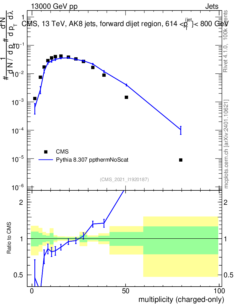 Lines: data, pythia8 8.307 ppthermNoScat |