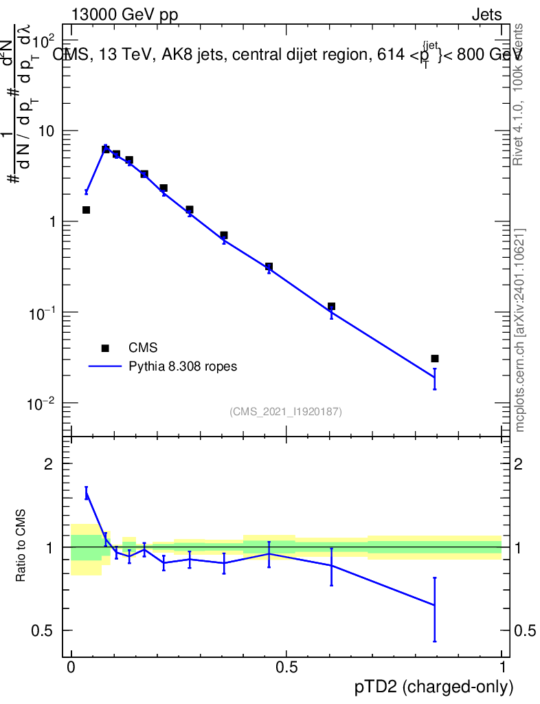 Lines: data, pythia8 8.308 ropes |