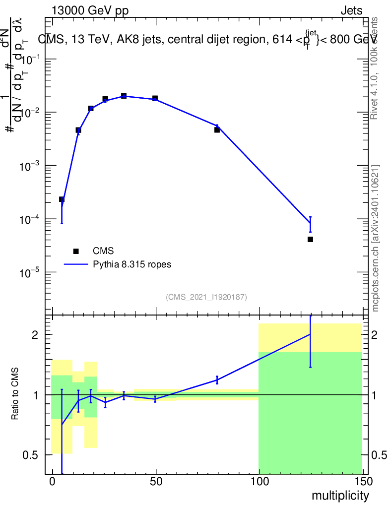 Lines: data, pythia8 8.315 ropes |