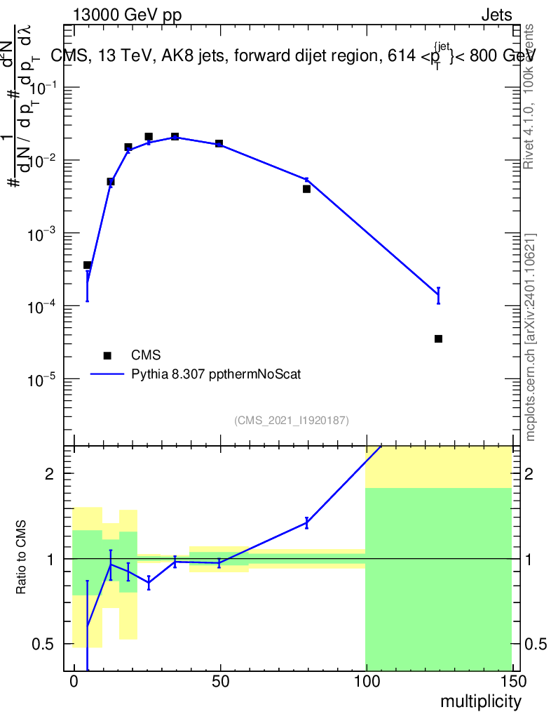 Lines: data, pythia8 8.307 ppthermNoScat |