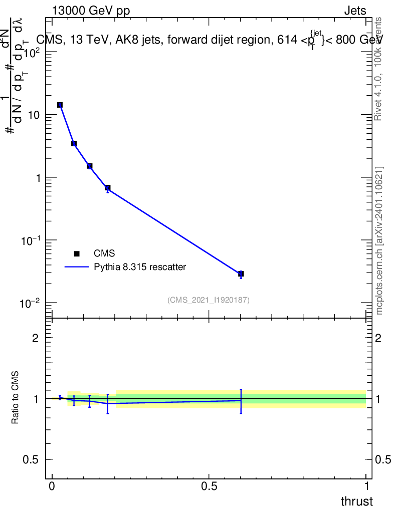 Lines: data, pythia8 8.315 rescatter |