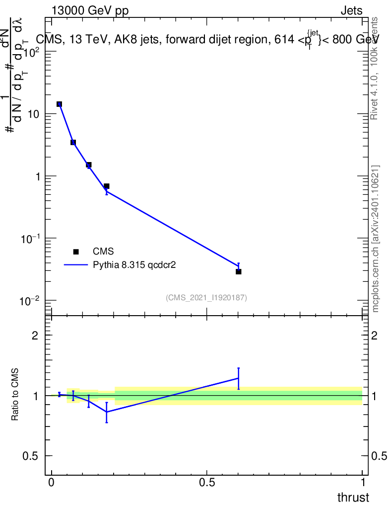 Lines: data, pythia8 8.315 qcdcr2 |