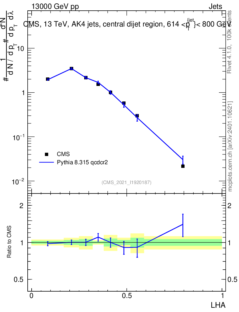 Lines: data, pythia8 8.315 qcdcr2 |