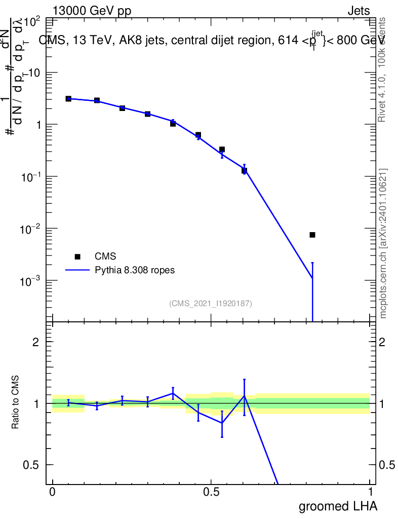 Lines: data, pythia8 8.308 ropes |