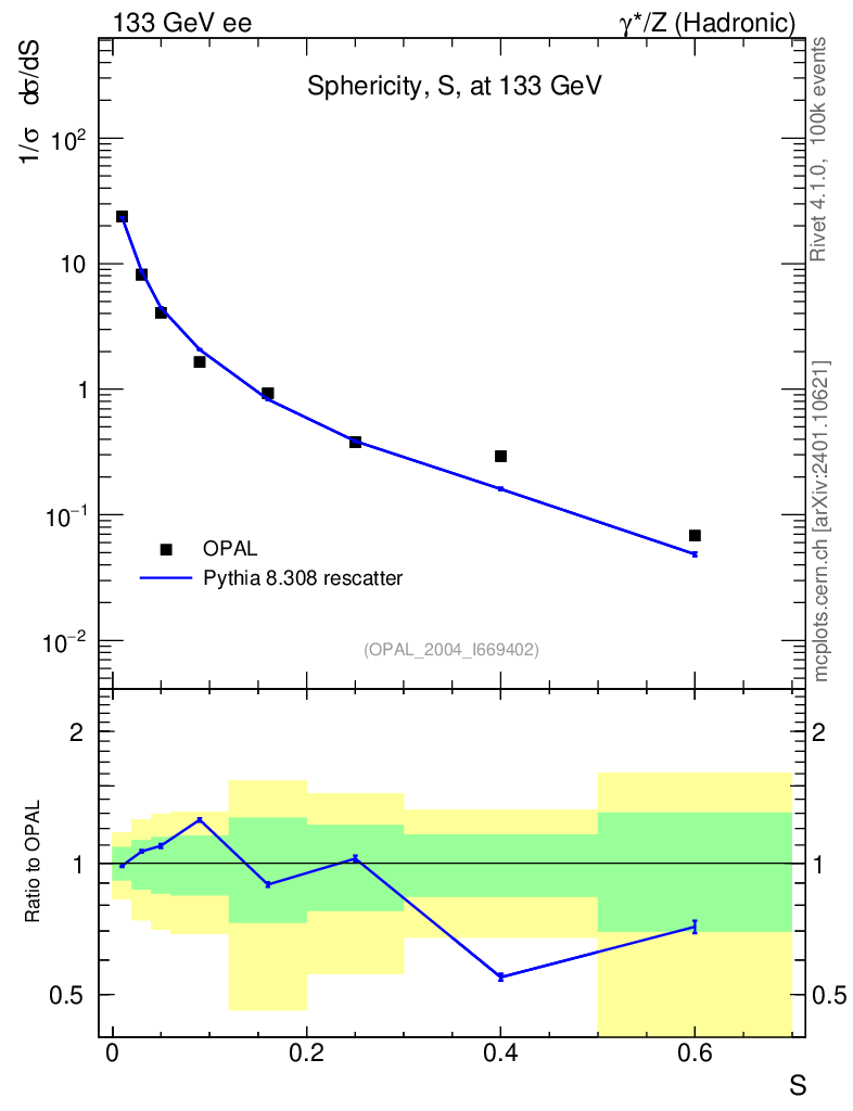 Lines: data, pythia8 8.308 rescatter |