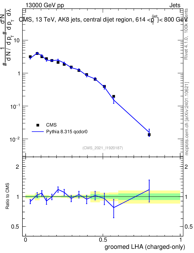 Lines: data, pythia8 8.315 qcdcr0 |
