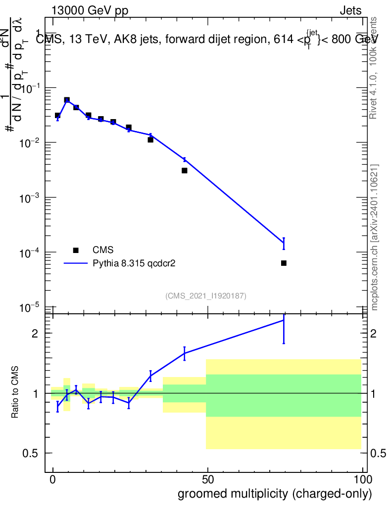 Lines: data, pythia8 8.315 qcdcr2 |