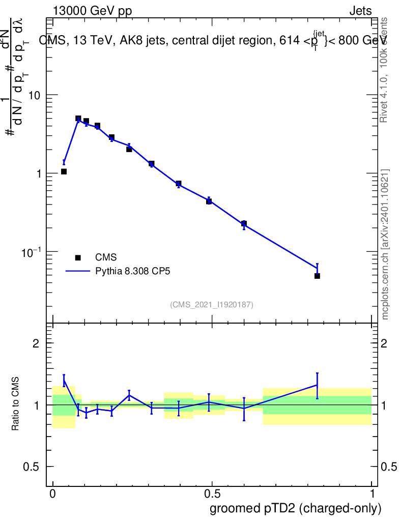 Lines: data, pythia8 8.308 CP5 |