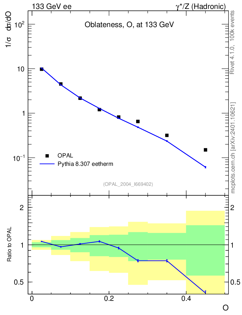 Lines: data, pythia8 8.307 eetherm |