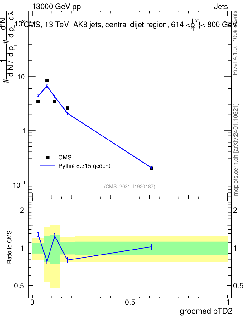 Lines: data, pythia8 8.315 qcdcr0 |