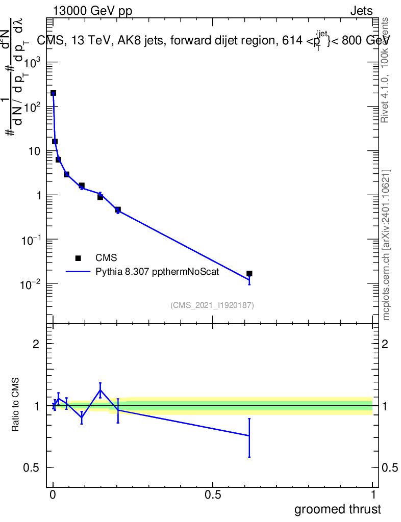 Lines: data, pythia8 8.307 ppthermNoScat |
