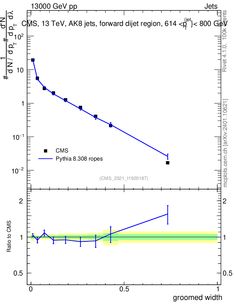 Lines: data, pythia8 8.308 ropes |