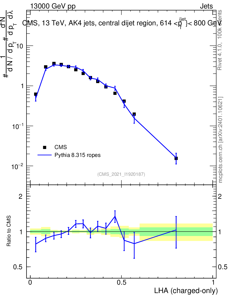 Lines: data, pythia8 8.315 ropes |