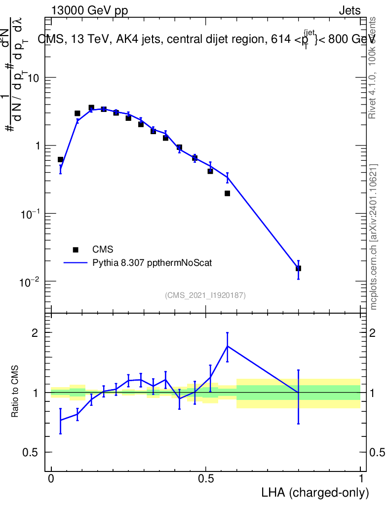 Lines: data, pythia8 8.307 ppthermNoScat |
