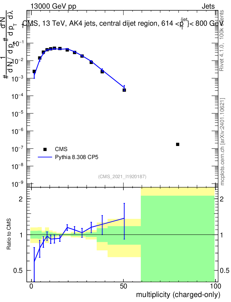 Lines: data, pythia8 8.308 CP5 |