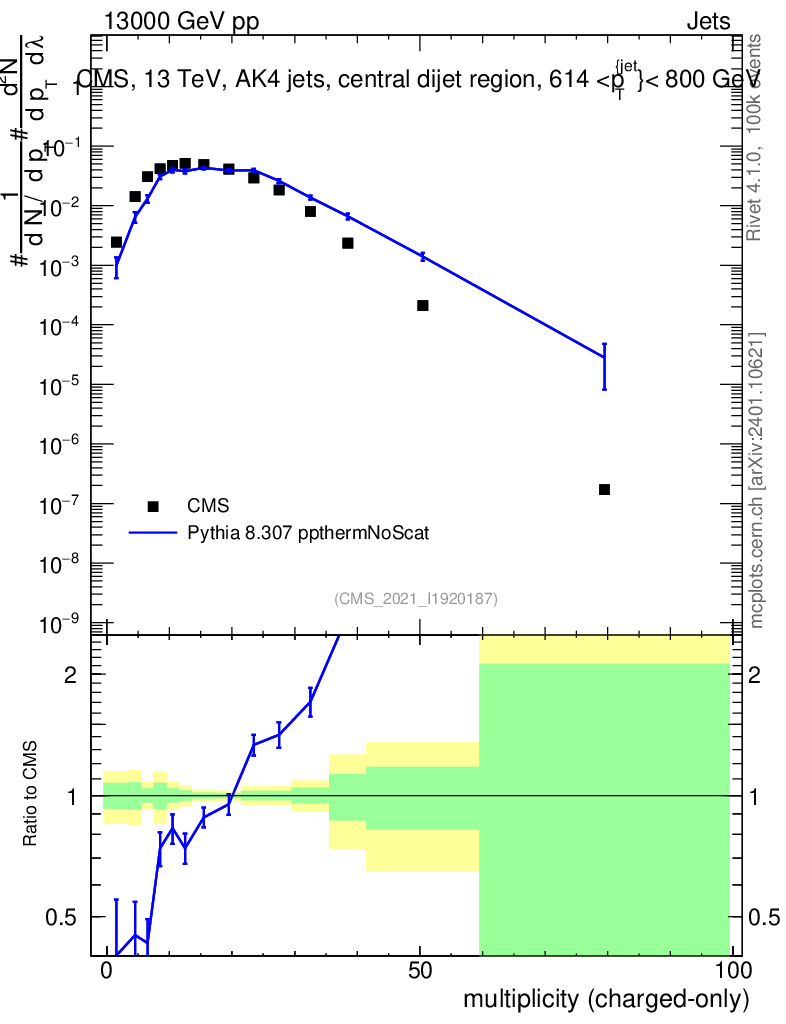 Lines: data, pythia8 8.307 ppthermNoScat |