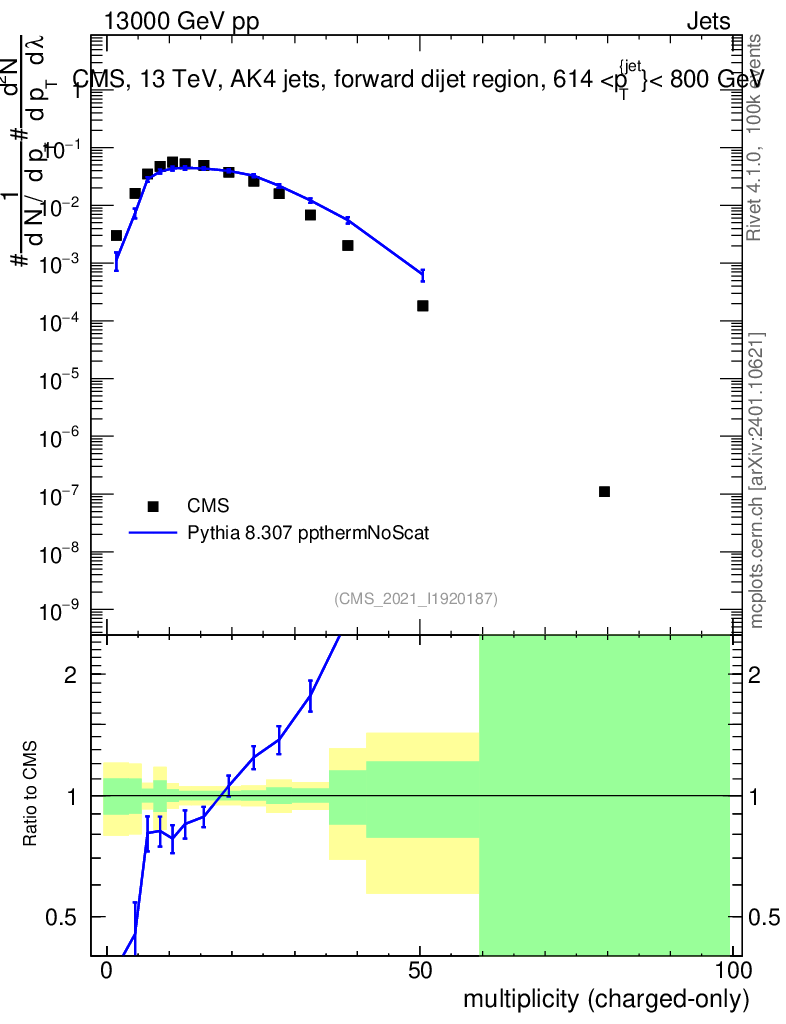 Lines: data, pythia8 8.307 ppthermNoScat |