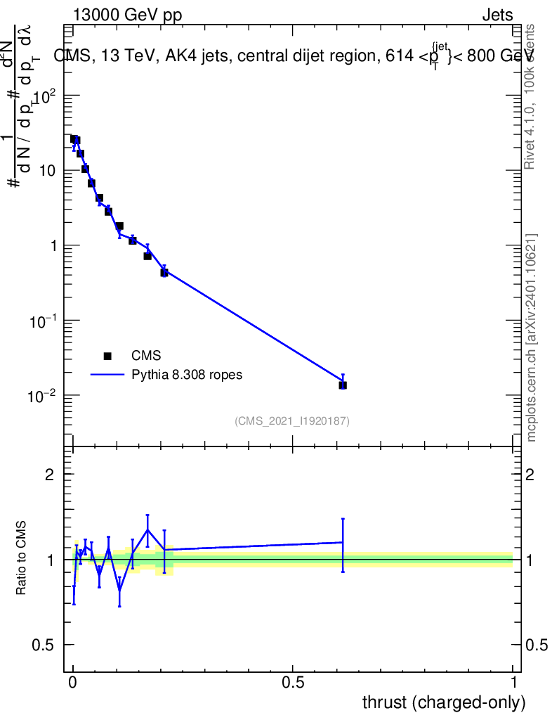 Lines: data, pythia8 8.308 ropes |