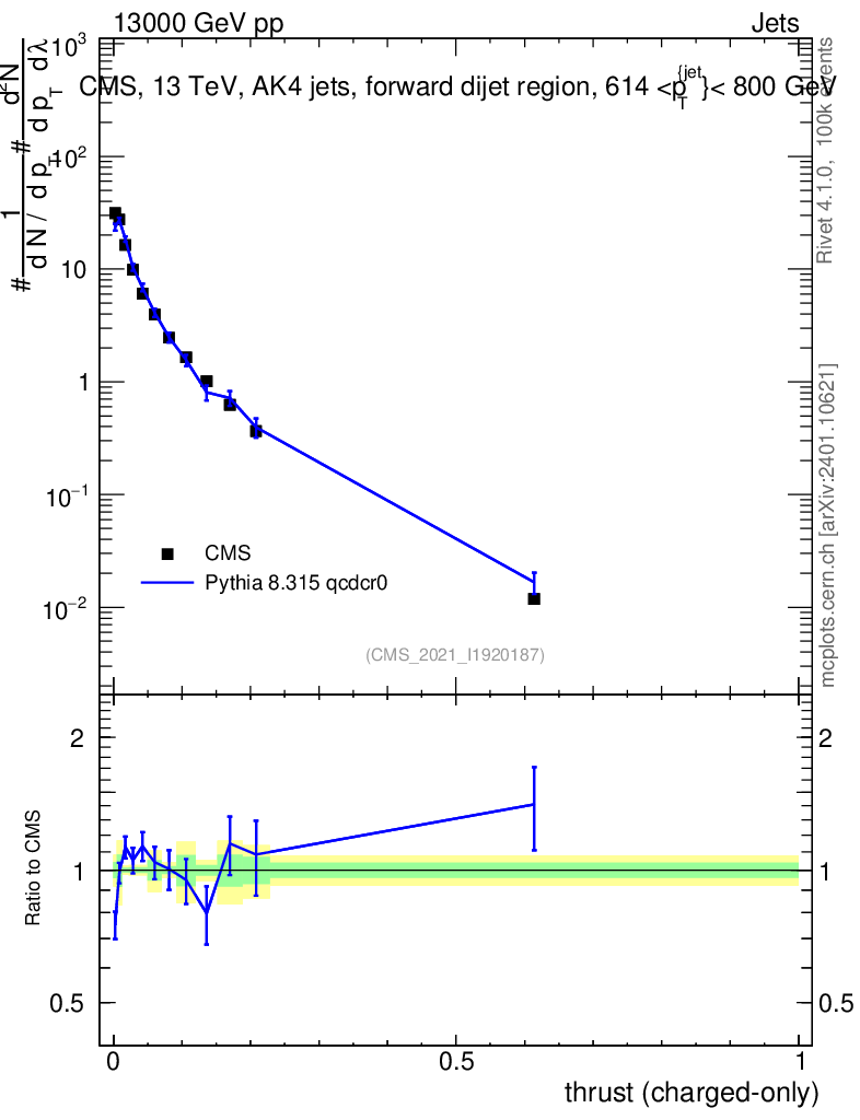 Lines: data, pythia8 8.315 qcdcr0 |