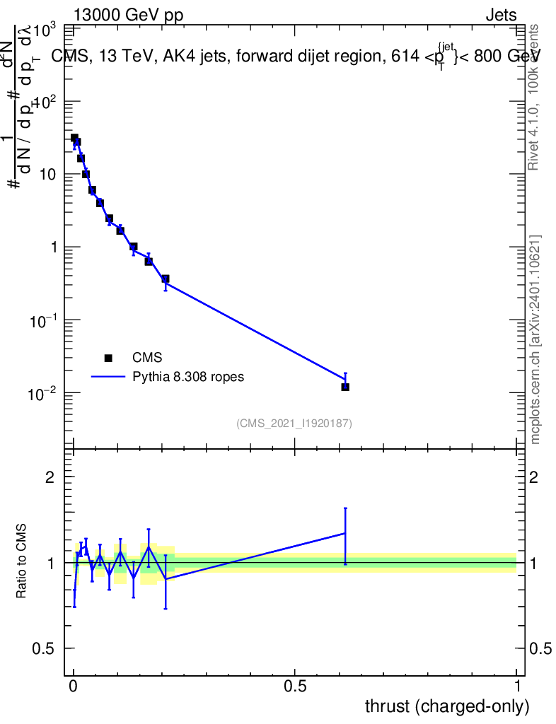Lines: data, pythia8 8.308 ropes |
