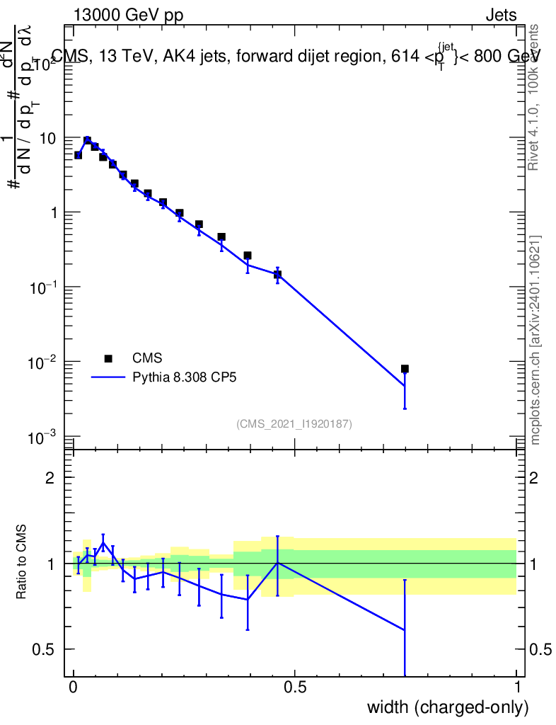Lines: data, pythia8 8.308 CP5 |