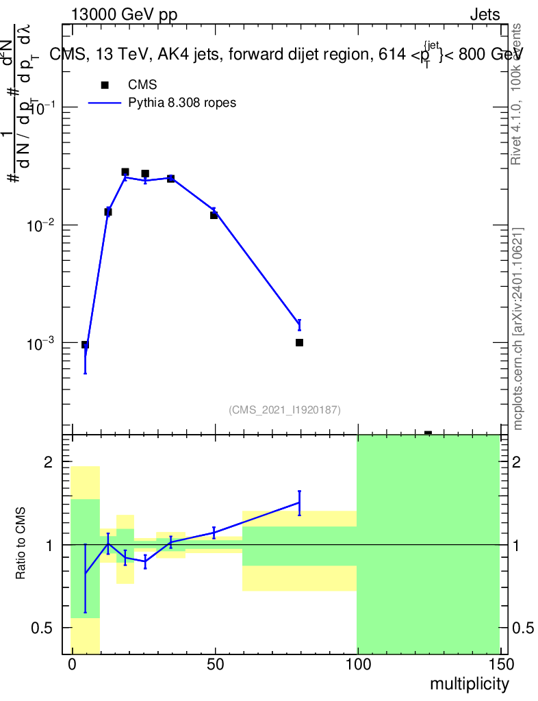 Lines: data, pythia8 8.308 ropes |