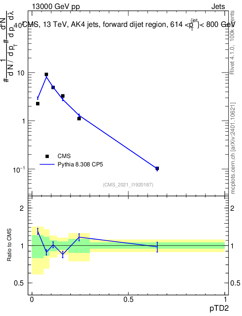 Lines: data, pythia8 8.308 CP5 |