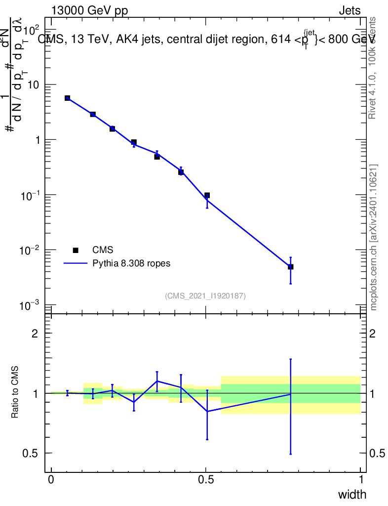 Lines: data, pythia8 8.308 ropes |