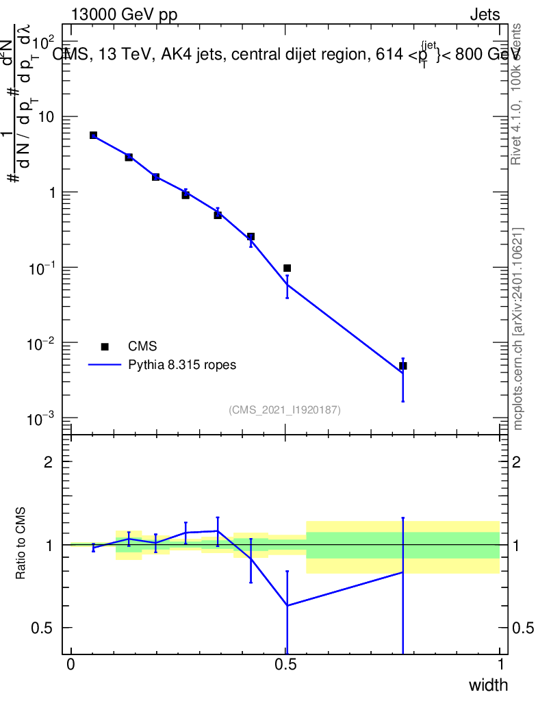 Lines: data, pythia8 8.315 ropes |